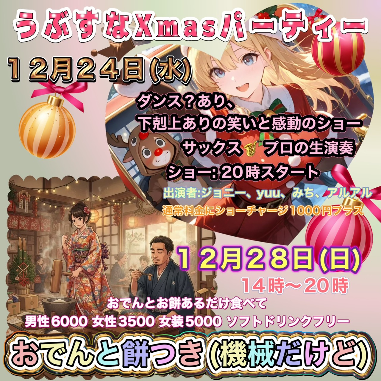 12月24日(水)この日はXmasパーティー、20時からはXmasにちなんだショーをしますよ~~、そしてなんと今年はプロのサックス奏者による生演奏があります。楽しみでしかないですよ!