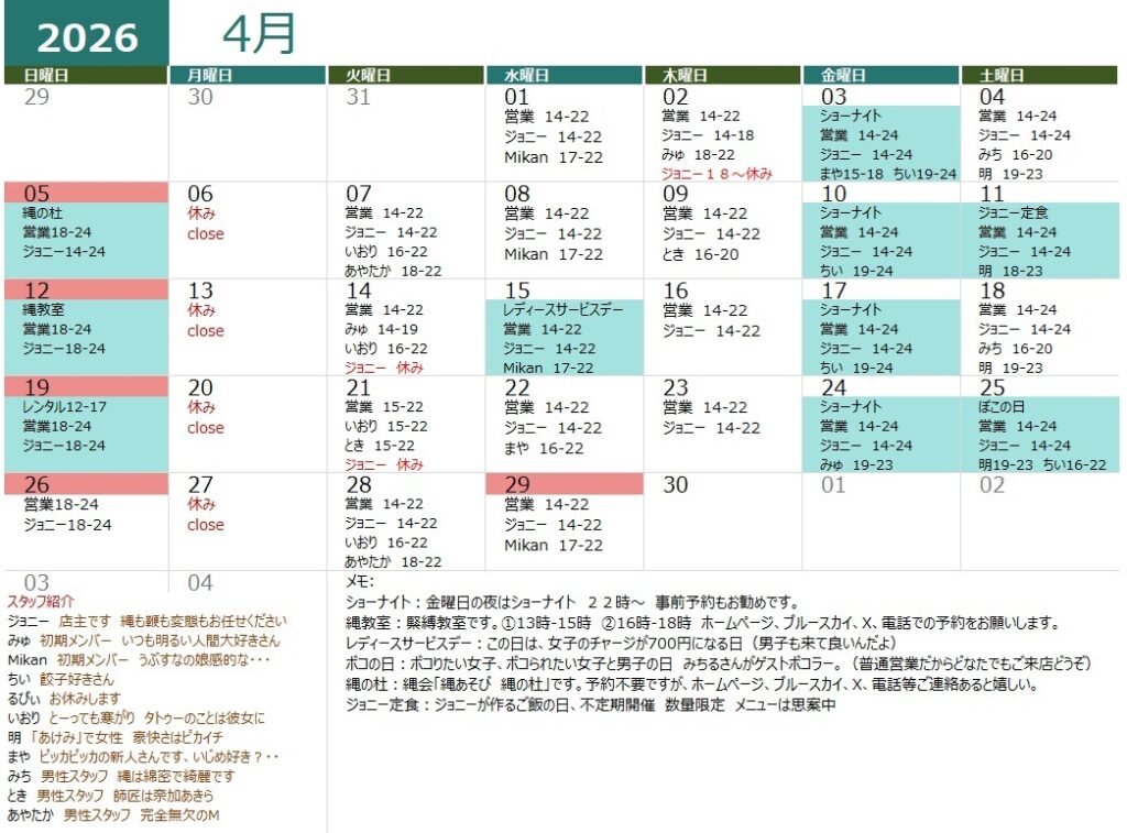 縄教室2026年3月29日4月の縄教室は12日です
